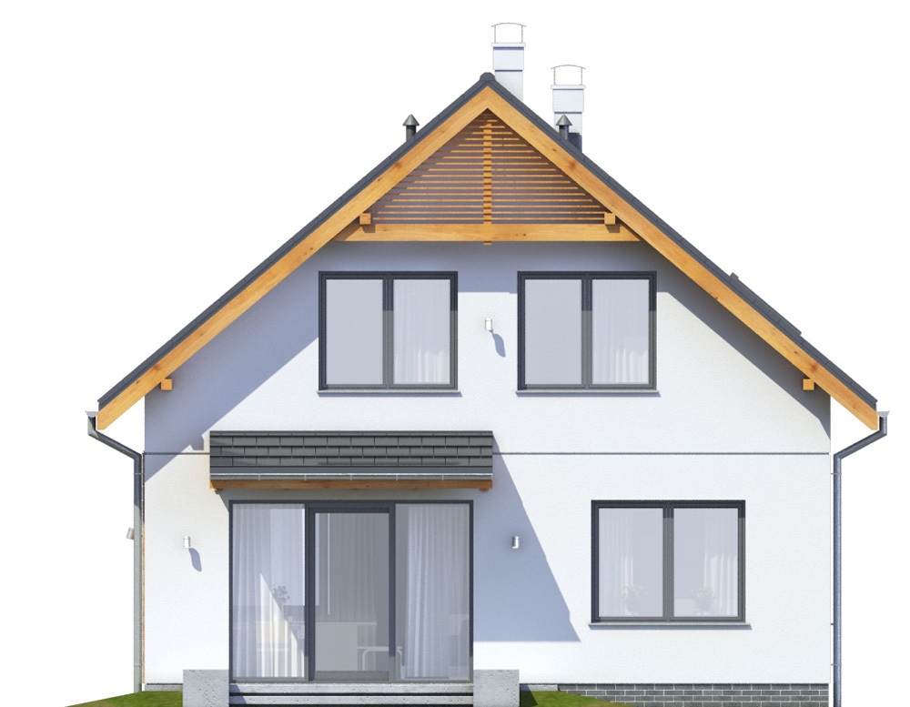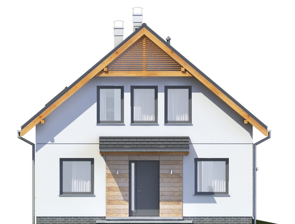 Posadowienie bezpośrednie na zbrojonych ławach i stopach fundamentowych wykonanych z betonu B 20. Ściany fundamentowe: murowane z bloczków betonowych M6. Ściany zewnętrzne: bloczki gazobetonowe gr. 25cm na zaprawie systemowej, ciepłochronnej, ocieplony styropianem fasadowym gr. 15cm. Do ocieplenia budynku zaprojektowano użycie styropianu grafitowego gr. 15 cm, o współczynniku „lambda” nie przekraczającym 0,035 W(mK) i „oporze cieplnym” nie mniejszym niż Rd – 4,0 m2k/W. Zastosowanie materiałów budowlanych (ocieplenie ścian, dachu, podłogi na gruncie, okien i drzwi zewnętrznych) użytych w projekcie odpowiada nowym wymaganiom obowiązującym od stycznia 2021 roku (WT2021). Ściany nośne wewnętrzne: bloczki gazobetonowe gr. 25cm na zaprawie cementowo-wapiennej lub systemowej. Ściany wewnętrzne działowe: bloczki gazobetonowe gr. 12cm. Strop gęstożebrowy z wypełnieniem pustakami betonowymi, zalewany wraz z wieńcami betonem B 20. Konstrukcja dachu: drewniana, drewno klasy C24, więźba dachowa krokwiowo-jętkowa. Budynek, w wersji podstawowej, jest zaprojektowany z pomieszczeniem kotłowni wyposażonej w kocioł ekologiczny na paliwo stałe, biomasę (granulat drzewny – pellet) i spełnia wszystkie wymagania dotyczące WT2021. Istnieje możliwość zamówienia dokumentacji projektowej w wersji ogrzewania gazowego ze wspomaganiem instalacją solarną lub ogrzewania nowoczesną pompa ciepła typu powietrze – woda i ogrzewaniem podłogowym. Standard energetyczny budynku, w każdej wersji ogrzewania jest w pełni spełniający wymagania WT2021. Projekt pod względem konstrukcyjnym spełnia normy zgodne z Eurokodami.