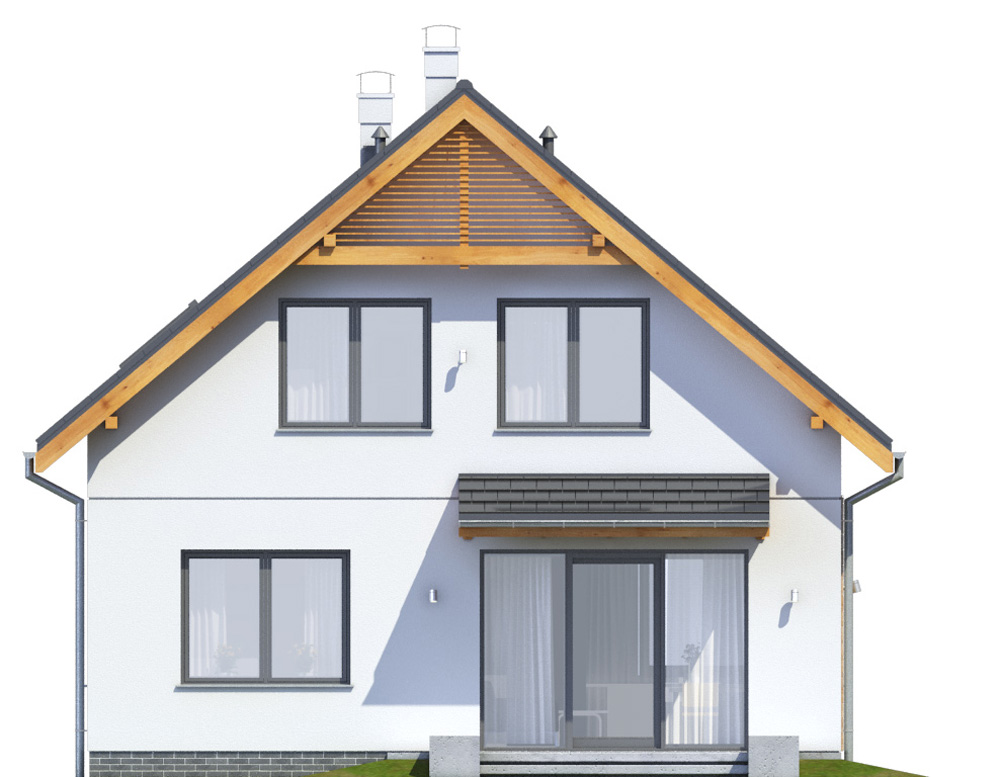 Posadowienie bezpośrednie na zbrojonych ławach i stopach fundamentowych wykonanych z betonu B 20. Ściany fundamentowe: murowane z bloczków betonowych M6. Ściany zewnętrzne: bloczki gazobetonowe gr. 25cm na zaprawie systemowej, ciepłochronnej, ocieplony styropianem fasadowym gr. 15cm. Do ocieplenia budynku zaprojektowano użycie styropianu grafitowego gr. 15 cm, o współczynniku „lambda” nie przekraczającym 0,035 W(mK) i „oporze cieplnym” nie mniejszym niż Rd – 4,0 m2k/W. Zastosowanie materiałów budowlanych (ocieplenie ścian, dachu, podłogi na gruncie, okien i drzwi zewnętrznych) użytych w projekcie odpowiada nowym wymaganiom obowiązującym od stycznia 2021 roku (WT2021). Ściany nośne wewnętrzne: bloczki gazobetonowe gr. 25cm na zaprawie cementowo-wapiennej lub systemowej. Ściany wewnętrzne działowe: bloczki gazobetonowe gr. 12cm. Strop gęstożebrowy z wypełnieniem pustakami betonowymi, zalewany wraz z wieńcami betonem B 20. Konstrukcja dachu: drewniana, drewno klasy C24, więźba dachowa krokwiowo-jętkowa. Budynek, w wersji podstawowej, jest zaprojektowany z pomieszczeniem kotłowni wyposażonej w kocioł ekologiczny na paliwo stałe, biomasę (granulat drzewny – pellet) i spełnia wszystkie wymagania dotyczące WT2021. Istnieje możliwość zamówienia dokumentacji projektowej w wersji ogrzewania gazowego ze wspomaganiem instalacją solarną lub ogrzewania nowoczesną pompa ciepła typu powietrze – woda i ogrzewaniem podłogowym. Standard energetyczny budynku, w każdej wersji ogrzewania jest w pełni spełniający wymagania WT2021. Projekt pod względem konstrukcyjnym spełnia normy zgodne z Eurokodami.