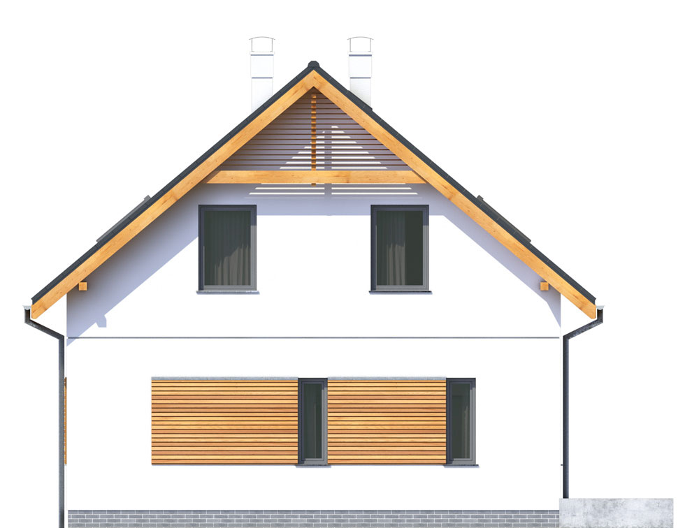 Dom Pinczer 1, został zaprojektowany dla potrzeb 4-ro lub 5-cio osobowej rodziny. Zwarta, kompaktowa bryła domu idealnie nadaje się na niewielkie działki budowlane. Budynek jest przekryty dwuspadowym dachem o bardzo prostej konstrukcji drewnianej i kalenicy usytuowanej równolegle do elewacji frontowej. Funkcjonalne, doskonale doświetlone wnętrza zakładają strefę dzienną na parterze oraz w pełni rozkładową strefę nocną na poddaszu. Przestronny, otwierający się na ogród salon z kuchnią oraz jadalnią, dopełniono zaprojektowanym tarasem który doskonale sprawdzi się jako miejsce na letnie posiłki. Dodatkowo na parterze zaprojektowano pomieszczenie mieszkalne które może służyć jako pokój gościnny lub pracownia. Na poddaszu, zaprojektowano optymalną wysokość ścianki kolankowej co pozwala na uzyskanie komfortowej powierzchni mieszkalnej w pokojach i zachowanie idealnych proporcji bryły obiektu. Budynek stanowi kompromis tradycyjnej formy, współczesnej estetyki oraz regionalnych materiałów, takich jak cegła klinkierowa, dachówka ceramiczna czy drewniana okładzina elewacyjna. Ponadczasowa architektura tego zgrabnego, eleganckiego domu sprawia, że z łatwością wpisze się w niemal każdy krajobraz.