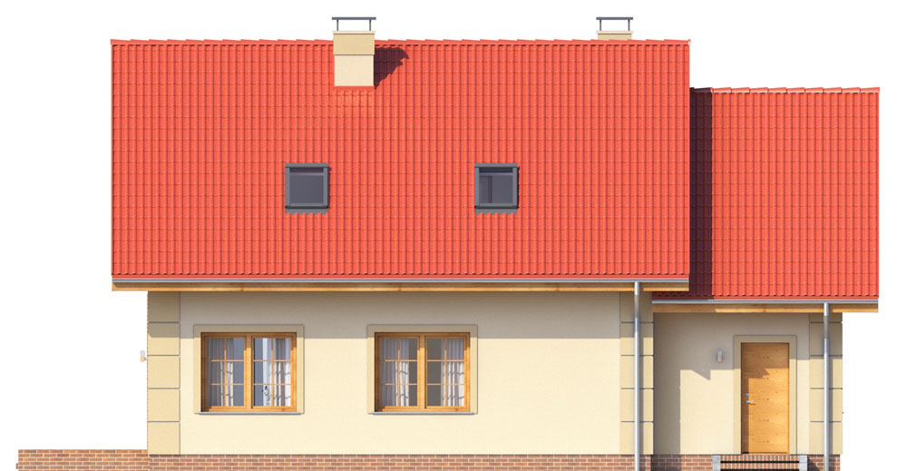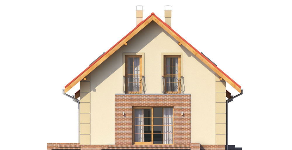Pinczer 2, został zaprojektowany dla potrzeb 4-ro lub 5-cio osobowej rodziny, poszukującej domu o klasycznej stylistyce. Zwarta, kompaktowa bryła domu idealnie nadaje się na niewielkie działki budowlane. Budynek jest przekryty dwuspadowym dachem o bardzo prostej konstrukcji drewnianej i kalenicy usytuowanej równolegle do elewacji frontowej. Dodatkowo do budynku został doprojektowany garaż jednostanowiskowy w poziomie parteru z pomieszczeniem mieszkalnym na poddaszu. Funkcjonalne, doskonale doświetlone wnętrza zakładają strefę dzienną na parterze oraz w pełni rozkładową strefę nocną na poddaszu. Przestronny, otwierający się na ogród salon z kuchnią oraz jadalnią, dopełniono zaprojektowanym tarasem który doskonale sprawdzi się jako miejsce na letnie posiłki. Dodatkowo na parterze zaprojektowano pomieszczenie mieszkalne które może służyć jako pokój gościnny lub pracownia. Na poddaszu, zaprojektowano optymalną wysokość ścianki kolankowej co pozwala na uzyskanie komfortowej powierzchni mieszkalnej w pokojach i zachowanie idealnych proporcji bryły obiektu. Budynek stanowi kompromis tradycyjnej formy, współczesnej estetyki oraz regionalnych materiałów, takich jak cegła klinkierowa, dachówka ceramiczna czy naturalne drewno. Ponadczasowa architektura tego niewielkiego, eleganckiego domu sprawia, że z łatwością wpisze się w niemal każdy krajobraz.