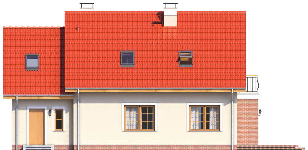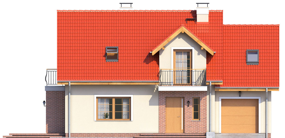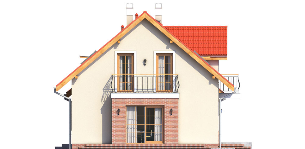 Pinczer 8, został zaprojektowany dla potrzeb 4-ro lub 5-cio osobowej rodziny, poszukującej domu o klasycznej stylistyce. Budynek jest przekryty dwuspadowym dachem o bardzo prostej konstrukcji drewnianej i kalenicy usytuowanej równolegle do elewacji frontowej. Dodatkowo do budynku został doprojektowany garaż jednostanowiskowy w poziomie parteru z pomieszczeniem strychu użytkowego na poddaszu. Główne wejście do budynku podkreślono zaprojektowaną lukarną z balkonem w poziomie piętra. Funkcjonalne, doskonale doświetlone wnętrza zakładają strefę dzienną na parterze oraz w pełni rozkładową strefę nocną na poddaszu. Przestronny, otwierający się na ogród salon z kuchnią oraz jadalnią, dopełniono wykuszem który doskonale sprawdzi się jako miejsce na rodzinne posiłki. Dodatkowo na parterze zaprojektowano pomieszczenie mieszkalne które może służyć jako pokój gościnny lub pracownia. Na poddaszu, zaprojektowano optymalną wysokość ścianki kolankowej co pozwala na uzyskanie komfortowej powierzchni mieszkalnej w pokojach i zachowanie idealnych proporcji bryły obiektu. Budynek stanowi kompromis tradycyjnej formy, współczesnej estetyki oraz regionalnych materiałów, takich jak elewacyjna okładzina drewniana, dachówka ceramiczna czy cegła klinkierowa. Ponadczasowa architektura tego niewielkiego, eleganckiego domu sprawia, że z łatwością wpisze się w niemal każdy krajobraz.